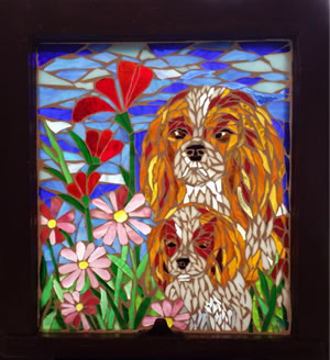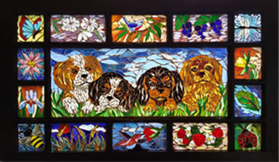 Due to us moving house we are only having one main feature this month, but what a feature! We are presenting some of the fabulous Cavalier artwork by Lisa Hossler from the USA who is both a Cavalier owner and an extremely talented artist. As well as painting and pottery sculpture she also specializes in stained glass artwork. We asked her about both her artwork and how she became involved with Cavaliers and here is what she said: